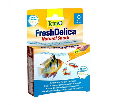 Tetra FreshDelica - натуральний корм у вигляді поживного желе, збагачений вітамінами, мікроелементами, протеїнами і жирами. Відмінні ласощі і для морських риб.