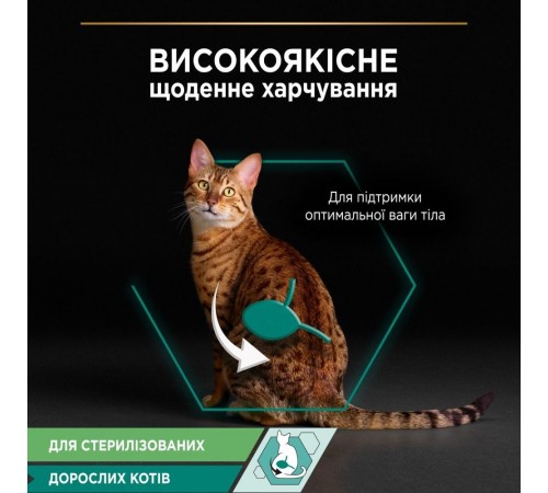 Консервований корм супер-преміум класу Sterilised з ніжною куркою в соусі розроблений для годування стерилізованих кішок і кастрованих котів. Це смачне збалансоване харчування, яке гарантовано полюбить ваш вихованець! Корм містить весь необхідний набір корисних речовин для нормального функціонування організму дорослих котів. Завдяки високоякісному білку і мінімальній кількості жирів в складі, запобігає набору зайвої ваги навіть при малій активності кота. Найкращим чином піклується про сечовивідну систему та покращує функціонування нирок, без ризику накопичення струвітних кристалів. Крім того, це харчування має захисні функції для організму і забезпечує збереження здоров'я та краси вихованця.