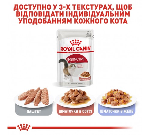 Вологий корм для котів Royal Canin Instinctive Gravy - повнораціонний вологий корм (тонкі шматочки в соусі) для котів старших 1 року.