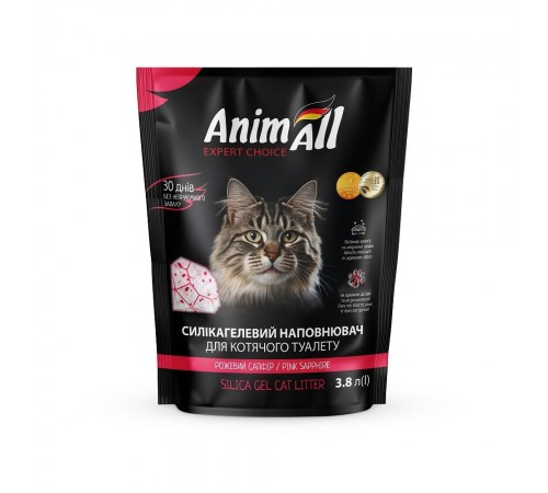 Силікагель AnimAll це висушений гель полікремнієві кислоти (SiO2), який хімічно складається з того ж з'єднання, що і звичайний пісок, але є високопористим тілом, тому має величезну площу поверхні (800 м2/1 г). Завдяки цій властивості силікагель має унікальну абсорбуючу (вбираючу) здатність. Волога і запах зникають в силікагелі AnimAll миттєво, але сам наповнювач ніколи не перетворюється на в'язку масу і не прилипає до котячих лап, а значить, не розноситься по дому.