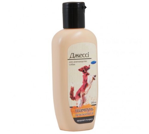 Гігієнічний шампунь для довгошерстих собак «Джессі» має репелентну дію проти бліх, кліщів та інших ектопаразитів. Репелентний ефект досягається завдяки унікальному поєднанню лікарських трав. Шампунь знімає подразнення, пом’якшує та тонізує шкіру, надає шерсті здорового блиску та м’якості, сприяє загоюванню розчосів.
