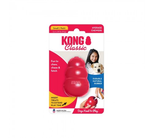 Іграшка для собак Kong Classic вироблена з міцної натуральної гуми червоного кольору. Унікальна формула натурального каучуку Kong розроблена спеціально для собак, які люблять жувати.