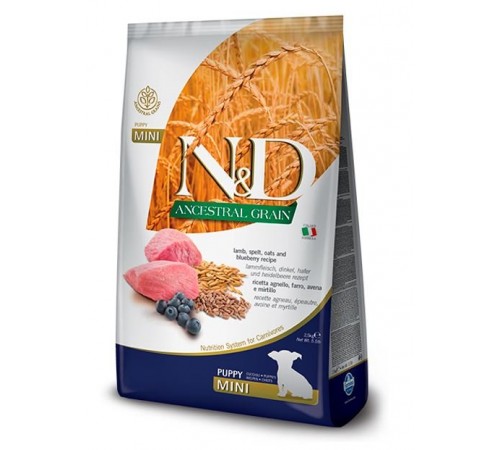 Farmina N&D Low Grain Dog Lamb&Blueberry Puppy Mini - cухий низькозерновий корм для цуценят дрібних порід, з ягням та чорницею, 2,5кг