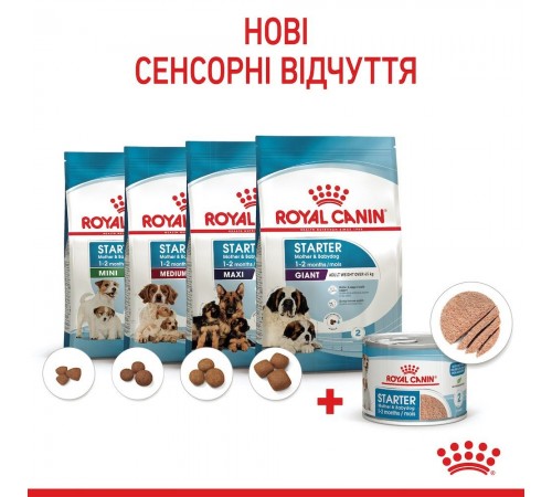 Крім того, Royal Canin Starter Mousse є ідеальним харчуванням для сук в останній третині вагітності, а також в період лактації.
