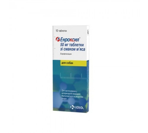 Enroxil by KRKA - Енроксіл протимікробні таблетки зі смаком м'яса для собак і котів, 15мг 10шт