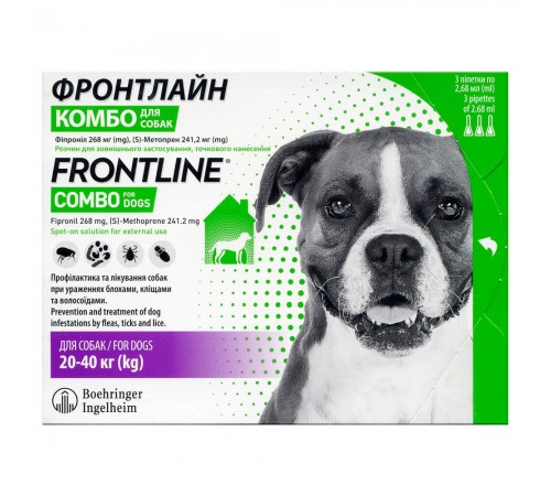 Краплі Боерінгер Інгельхайм Фронтлайн Комбо для профілактики та лікування зараження собак ектопаразитами